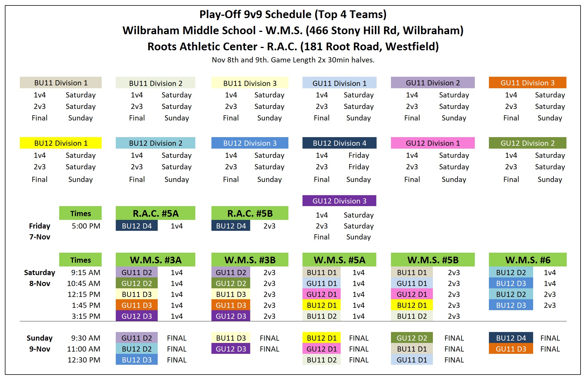 The TOP 4 TEAMS in each division qualify for the 9v9 Play-Off's. Regular season standings are calculated by: