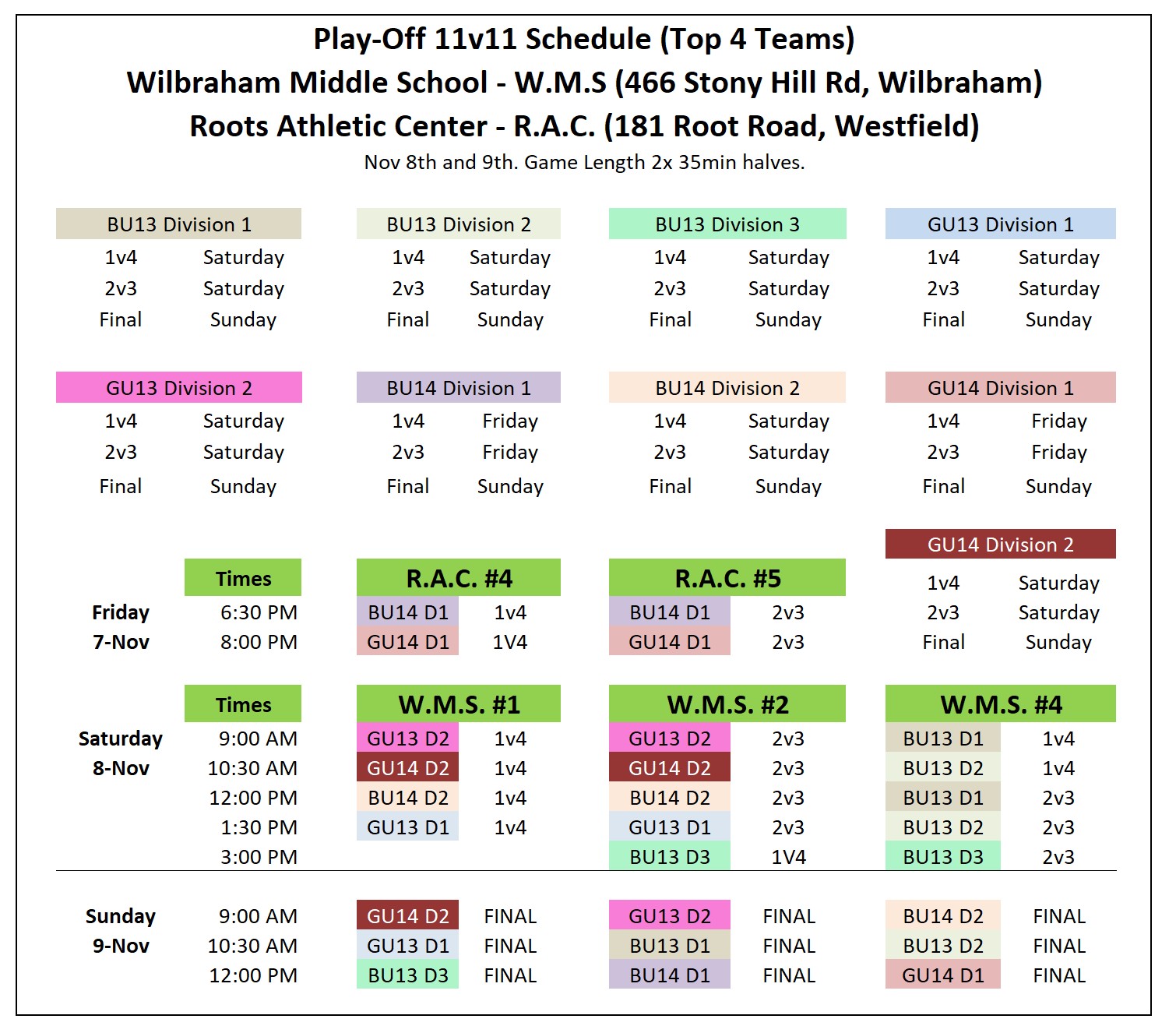 The TOP 4 TEAMS in each division qualify for the 11v11 Play-Off's. Regular season standings are calculated by: